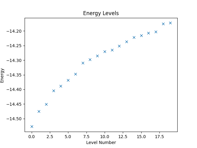 The eigenvalues are the energy levels of the system and can be plotted as follows, while the resulting figure is shown below.