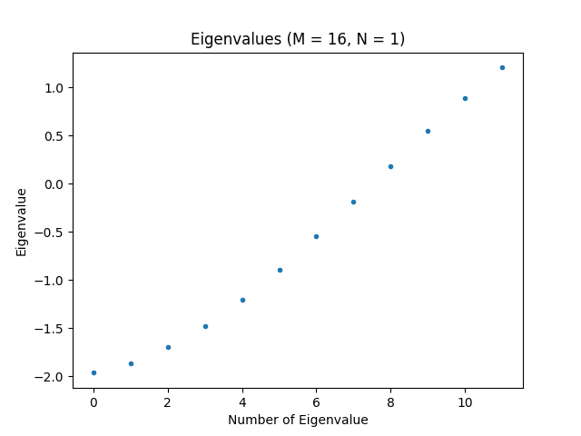 Below, we have listed the 5 smallest eigenvalues for M = 16 and different