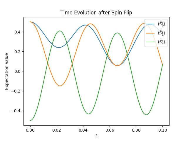 The figure below shows the resulting plot, which shows how the spins polarization oscillates after the spin flip.